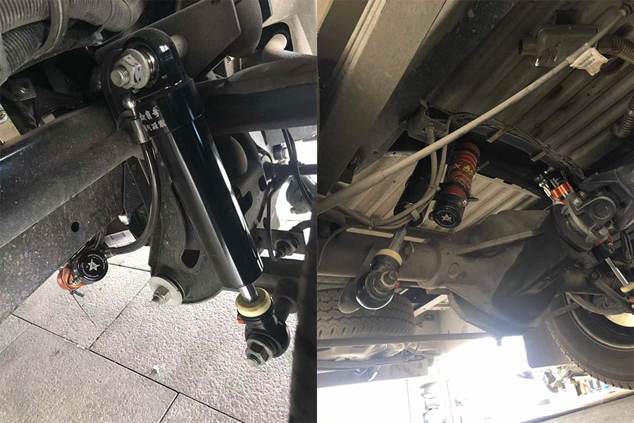 這個(gè)車沒有改裝氮?dú)鉁p震器時(shí)候使用原車的減震器,高速上遇大風(fēng)方向盤抖動(dòng)、變道不穩(wěn)、一般路況都顛簸的不行,安裝了我們電控氮?dú)鉁p震器在車上邊開邊調(diào),明顯感覺到變化,整個(gè)車變得更加扎實(shí)了,減震器把鋼板彈簧拉的死死的,在高速上遇見橫風(fēng)也是非常的穩(wěn)定,一般的路況跑沒有以前顛,減震器有更好的緩沖功能,更好的舒適感,值得換一套這樣的減震器,出去旅游拉人也不會(huì)顛的后面人暈車了!