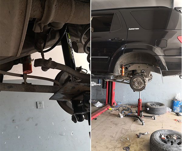 內(nèi)蒙古豐田紅杉霸哥手調(diào)款16段可調(diào)節(jié)軟硬6段可調(diào)回彈氮?dú)鉁p震器改裝案例