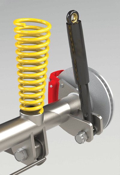 一般情況下,前減包括一個(gè)支撐車輛重量的螺旋彈簧、一個(gè)為總成提供剛性結(jié)構(gòu)支撐的前減罩和一個(gè)控制彈簧和懸架運(yùn)動(dòng)的置于前減罩內(nèi)的阻尼裝置。前減底部與轉(zhuǎn)向節(jié)連接,轉(zhuǎn)向節(jié)又通過下球形接頭與下控制臂連接。