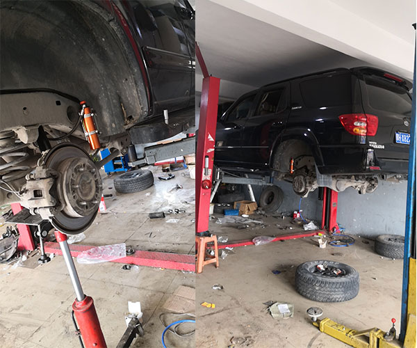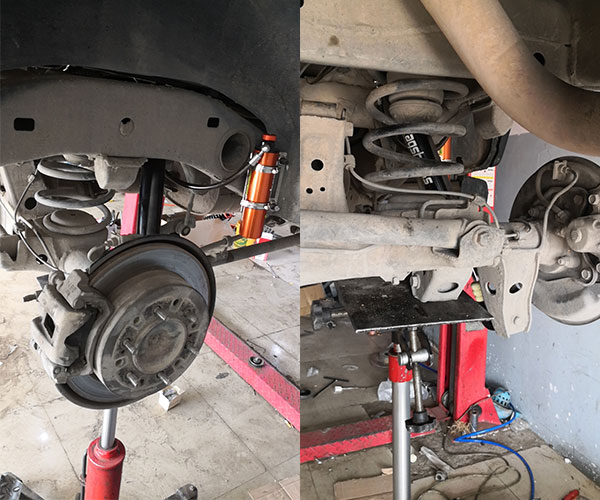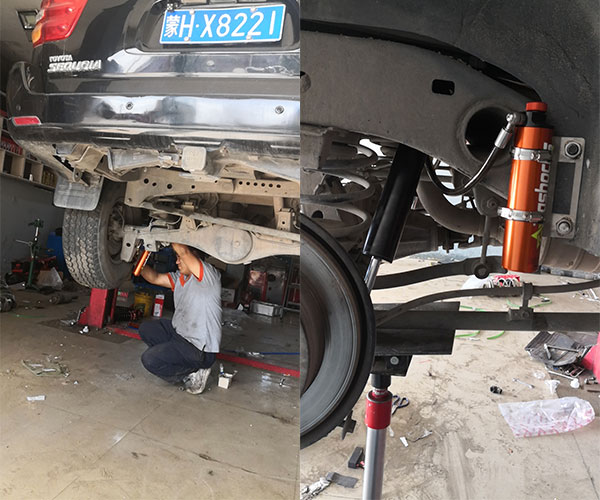 內(nèi)蒙古豐田紅杉霸哥手調(diào)款16段可調(diào)節(jié)軟硬6段可調(diào)回彈氮?dú)鉁p震器改裝案例