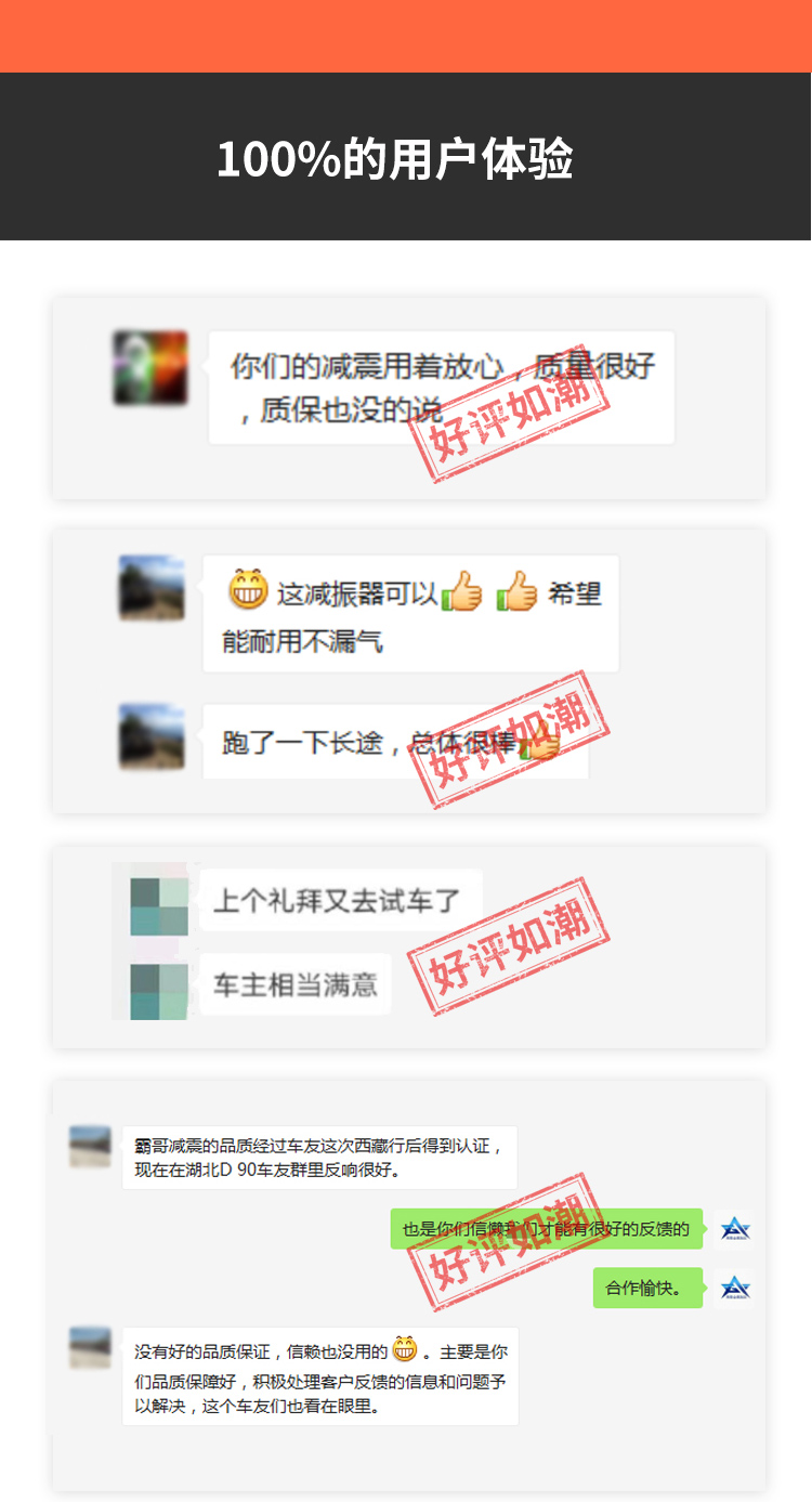 越野減震器:質(zhì)保一年!一年內(nèi)因產(chǎn)品品質(zhì)原因造成漏油,可享免費(fèi)質(zhì)保服務(wù)!