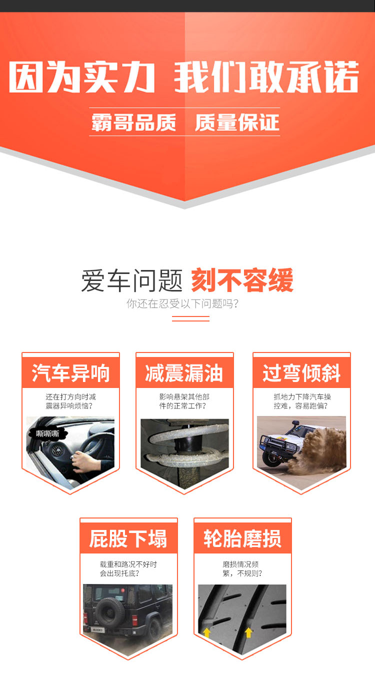 越野減震器:質(zhì)保一年!一年內(nèi)因產(chǎn)品品質(zhì)原因造成漏油,可享免費(fèi)質(zhì)保服務(wù)