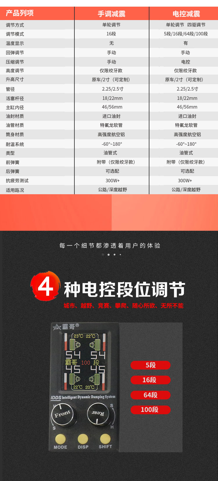 帕杰羅V97各個年款的車型均可定制制作,100段電子可調(diào)壓縮軟硬避震,6段回彈可調(diào)快慢!