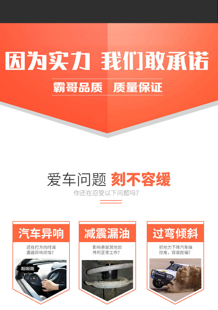 越野減震器:質(zhì)保一年!一年內(nèi)因產(chǎn)品品質(zhì)原因造成漏油,可享免費質(zhì)保服務(wù)