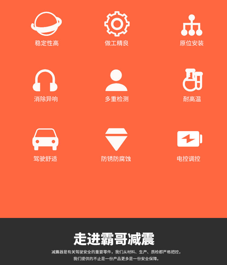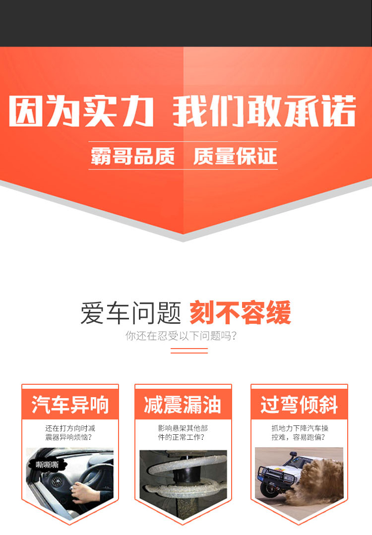 越野減震器:質(zhì)保一年!一年內(nèi)因產(chǎn)品品質(zhì)原因造成漏油,可享免費(fèi)質(zhì)保服務(wù)